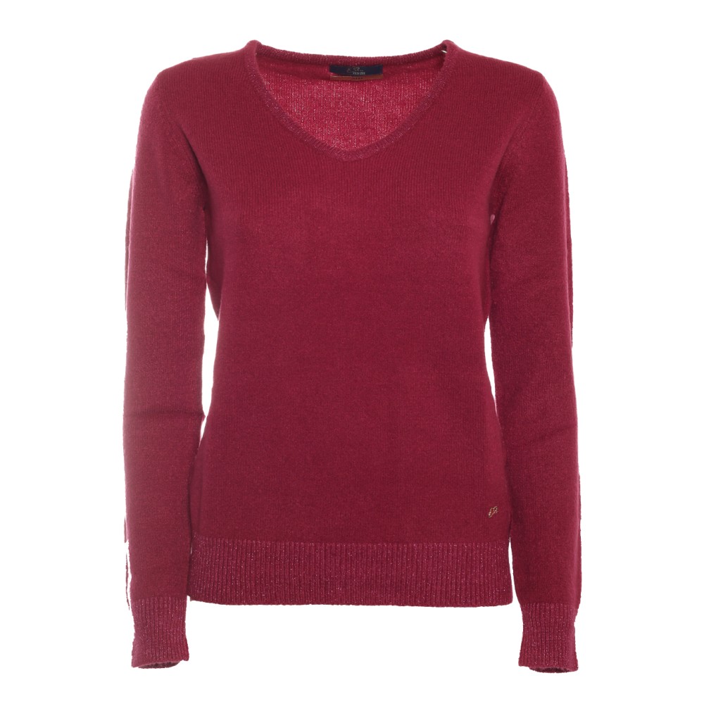 YES ZEE: Maglione fuxia con V in lurex